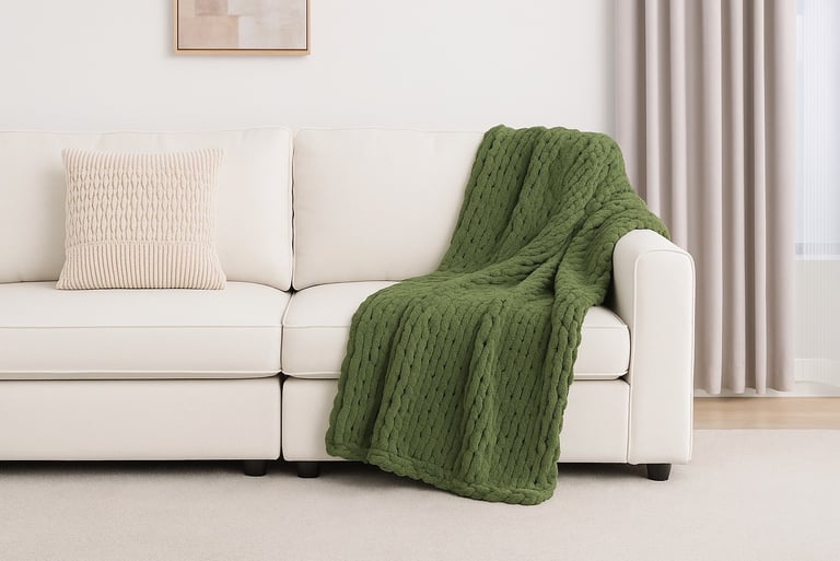 Drape it casually over the arm of your sofa or fold it neatly into a basket for a styled-but-functional touch. The deep green color ties in beautifully with earthy fall tones—think burnt orange, beige, and natural wood—while the thick knit invites guests to snuggle up.