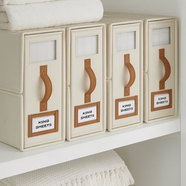 With the Non-Slip Basket Labels, you can instantly add a polished look. These cream-colored labels clip onto baskets or bins, and they come with a free marker for custom writing. Label each section clearly—“King Sheets,” “Guest Towels,” “Blankets,” “Pillowcases”—so everything has a home.