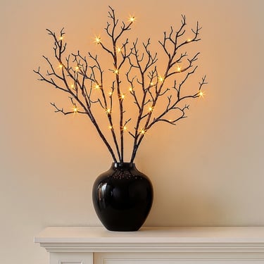 Arrange the lighted branches inside your black vase to blend natural form with a soft orange shimmer. The twinkling fairy lights create just enough movement to mimic candlelight, giving the space a flickering, magical quality.
