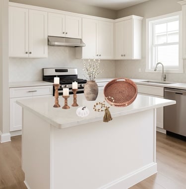 Incorporate natural textures. Wood, rattan, ceramic, and soft faux florals are your best friends.